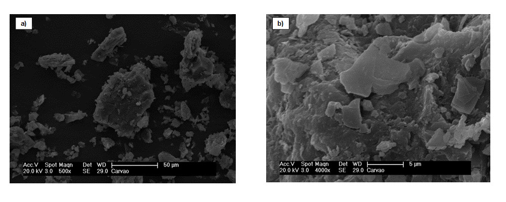 The calorific value of FC was 4.780 kCal/kg. According to Unicamp [23], C and H are the main elements that contribute to that parameter, whereas the presence of oxygen decreases the calorific value as well as the necessity of combustion air. Thus, the content of carbon in the coal is directly related to the calorific value, accordingly, coal with a high content of carbon can also present a high calorific value. On the other hand, coal with a high content of humidity and ash is considered as lower quality.