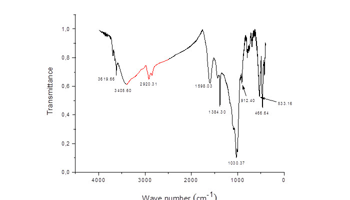 The functional groups present in the coal and in the ash samples were determined by the Fourier Transform Infrared (FTIR) absorption spectroscopy technique using Thermo-Nicolet equipment, model Nexus 670, with a range of 4000 cm-1 at 400 cm-1. Samples were prepared by dissolving the sample itself with KBr (previously oven dried and used as diluent) until a homogeneous mixture was obtained. The solid mixture was pressed to form a pellet and submitted to the equipment.