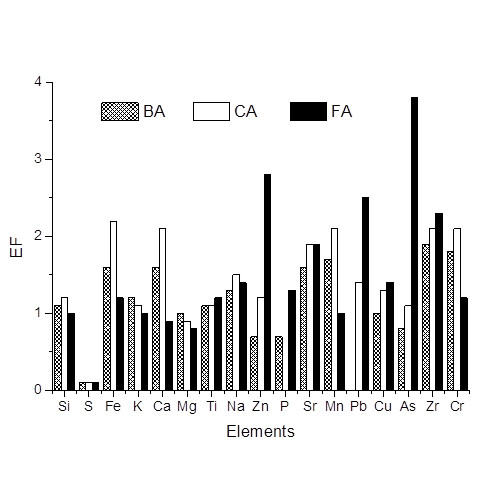According to Table 11, FA sample was the only one that presented in the leachate solution a concentration (for As) above the allowed limit by Brazilian regulation (1.27 mg L-1, while the limit is 1.0 mg L-1). Thus, the FA sample is considered hazardous and can be classified as Class I, while CA and BA samples can be classified as Class II (non-hazardous waste). Therefore, the disposal of the ash from the bag filter should be carried out after treatment or be carefully disposed of in industrial landfills designed to handle hazardous waste in order to avoid contamination on site.