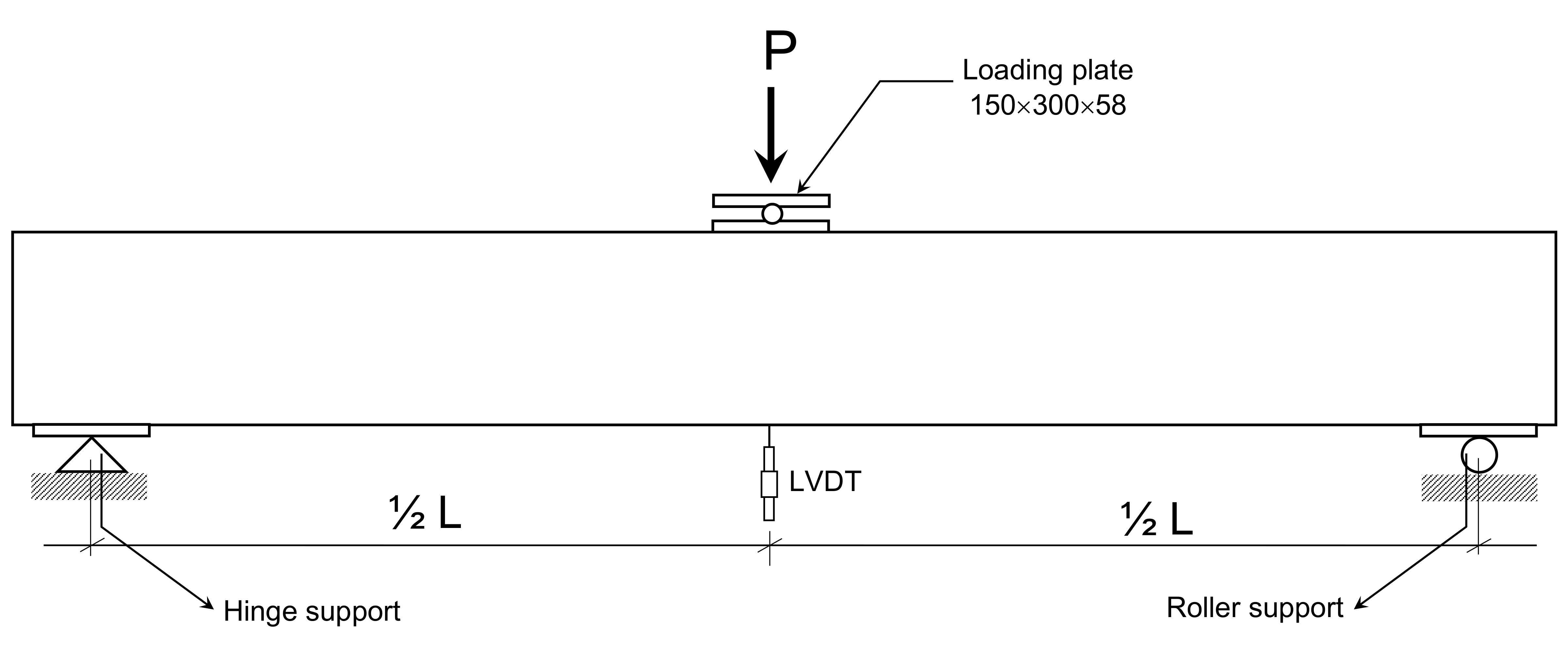 Figure 2 shows the experimental setup of beams analysed in this study. The beams were placed on hinge and roller supports to mimic a simply-supported structure mechanism and the load was applied at the middle of the beam span using a 2700 kN servo-controlled universal testing machine. During the test, the beam was instrumented with the load cell the LVDT to measure the load and displacement at the midspan. At the beginning of the test, the load were given in the form of load-control with the increment of 40 kN and then, the load near the failure was switched to the displacement control [11].